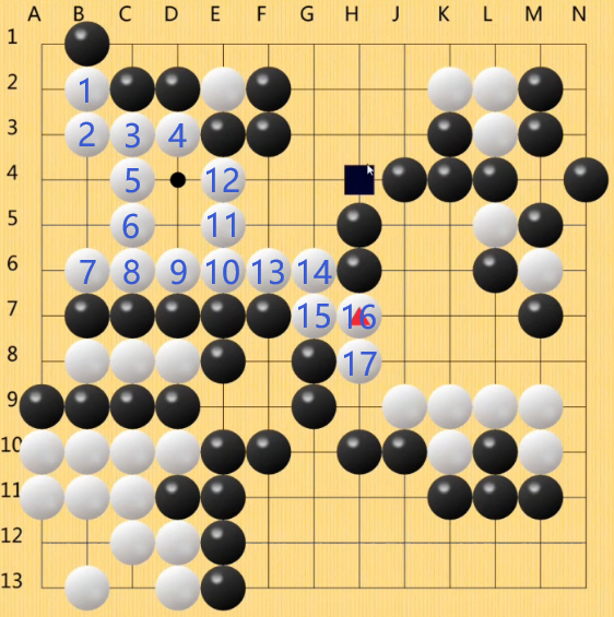 这就验证了之前的“隔棋”下法,1号位置的白子的作用是帮助逃跑。