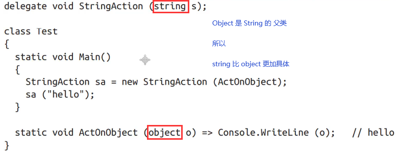 ✦ 委托可以接受比它的方法目标更具体的参数类型,这个叫ContraVariance。