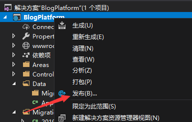 1.将做好的.NET Core Web项目发布,右击项目名称→发布。