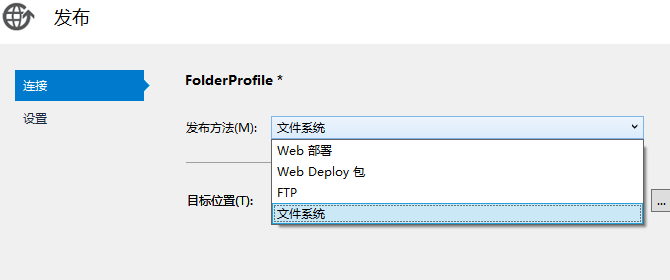 2.发布方法选择文件系统,然后确认目标位置是你找得到的位置,点击发布。