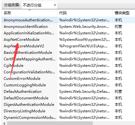 4.确认是否存在AspNetCoreModule,没有的话去下载安装。