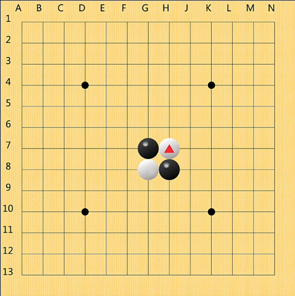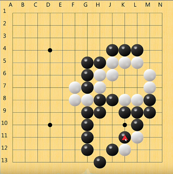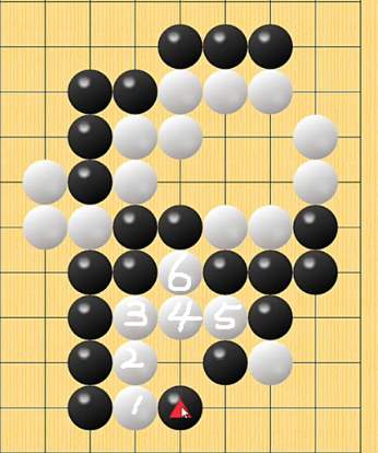 13.白棋行棋6。(围棋呢,其实堵住气以外,还可以形成网把对方罩起来)