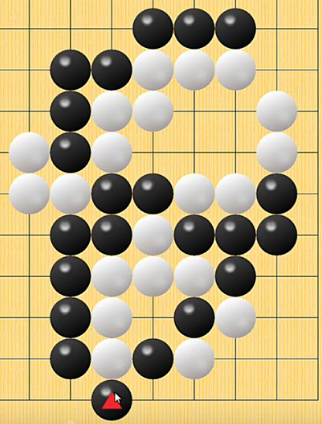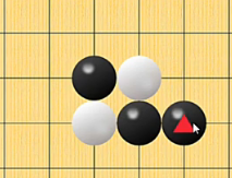 ⑤4个气上被下了对方的棋子,则该棋子死亡,该棋子从棋盘中剔除,留下的空位是对方的地盘。