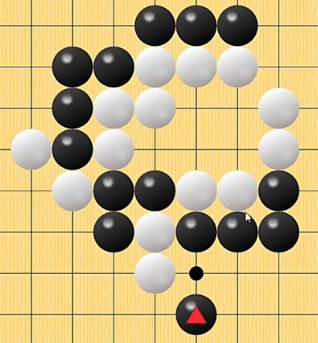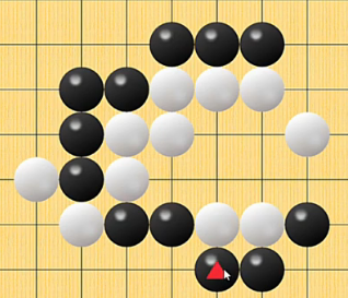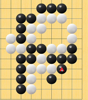 28.这3个棋子又只剩两口气了,我选择下在这里,顺便包围上面的白棋:
