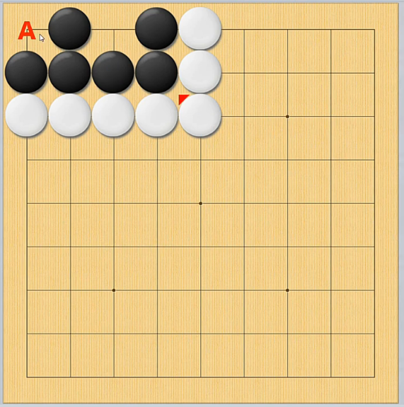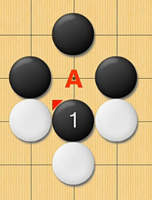 规则上,白棋要想下在黑棋里面,必须要有气或能吃掉黑棋,而以上留下的A位置不满足条件,另外一个也是。